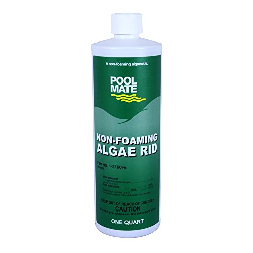 Pool Mate Non Foaming Algae Rid is a powerful and highly concentrated chelated copper based algaecide. Recognized as the strongest non foaming algaecide for killing and preventing green algae. A fast acting high quality non foaming 7.41% copper algaecide this product eliminates most types of algae without clouding water. the residue stays in solution indefinitely for long lasting residual effects. Ideal for spring start up. Swim 10 minutes after treatment. Do not mix this algaecide with soap or other cleaners. Do not premix with other water treating chemicals. These chemicals must be handled separately. Directions for use: Dilute appropriate amount of product with at least nine parts water and pour directly into pool along the edges while the filter and pump are in operation. To allow time for even distribution in pool water bathers must allow 10 minutes after treatment before entering pool. Initial application: Free of Visible Algae/Start of Season: Apply 2 oz. of this product per 5 000 gallons of pool water (or equivalent) under sunny conditions for most effective results. If Algae Growth is Visible: Apply initial dose then vacuum pool after 24 hours to remove dead algae. If pool is heavy with algae growth first brush algae spots vacuum clean and scrub the pool walls. Apply initial dose then vacuum remaining algae debris. Maintenance Dose: Apply 1 oz. of product per 5 000 gallons of pool water (or equivalent) every 5 to 7 days. Note: After heavy or prolonged rainfall high prevailing temperatures or heavy swimming use add the maintenance dose more frequently. More Reviews On Amazon