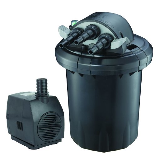 This jebao cf 10 pressure filter come with an integrated 13 watt uvc back wash facility cleaning indicator and a uvc viewing window. If you have a nature pond with plants this filter clean up to 1500 gallon pond. If you have a gold fish pond with some plants this filter clean up to 1000 gallon pond. If you have a koi pond or large fish this filter clean up to 500 gallon pond. How does it work? Stage 1 mechanical filtration: Water is pumped into the filter creating the necessary pressure to begin the mechanical filtration stage. Two foam discs collect various sizes of unwanted organic debris encouraging the growth of large numbers of beneficial bacteria which break down harmful pollutants. Stage 2 biological filtration: At this stage the water passes through the bio balls at the bottom of the filter. These have a large surface area & provide a habitat for beneficial bacteria to grow which naturally convert the harmful toxins of ammonia & nitrites into useful nitrates to support a healthy pond environment. Stage 3 UV clarification: The water which may contain microscopic suspended algae spores passes the UV lamp clumping and killing the spores to give crystal clear water. Why this external pond UV bio filter so effective? Water is slowed down as it passes the lamp to increase UV penetration quartz glass tube covering the UV lamp permits effective penetration of UV rays. Ordinary glass cuts this by 90% UV lamp runs at optimum operating temperature in an enclosed chamber water is kept as close as possible to the UV lamp to maximize UV efficiency single ended lamps last longer and have higher UV output. More Reviews On Amazon