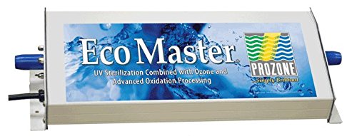 Eco Master Residential Pool Ozone/UV Sterilization generator for Residential pools up to 40 000 gallons features our patented Corona Hybrid Arc Tube UV C Germicidal Sterilization universal solid state ballast integrated Dynamic Venturi Injector and standard inline installation kit. Eco Master combines state of the art UV Sterilization with Ozone and Advanced Oxidation Processing (AOP) all in one compact system. Prozone patented Corona Hybrid Arc Tube harnesses the high ozone concentrations of Corona Discharge generators while maintaining the simplicity and reliability of VUV technology. Rugged functional housing made of heavy extruded aluminum for durability; translucent gaskets glow when the system is on. Low cost low maintenance operation Warranty 2 years 110/240 VAC 50/60 Hz Universal Voltage Connection: 3 Prong Nema Plug Ozone Purity: 100% no nitrogen byproducts Arc Life (nominal): 20 000 hours Operating Temperature: +25 Degree F to +120 Degree F Weight: 10 lbs. Dimensions: 17″W x 6 1/4″D x 3 1/2″H. More Reviews On Amazon